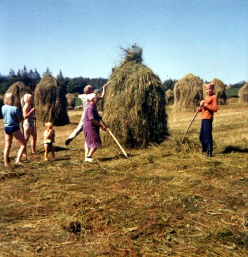 Isomummuni Eeva Stiina Arffman (Pernumäellä samaa Arffman-sukua), Ohravaaran Otralan tyttö, on ollut tosi taitava käsityöntekijä. Hänen aikanaan ja varmaan myöhemminkin on hamppuja ja pellavia kasvatettu meillä. Muistan, että puhuttiin pellavien ja hamppujen liotuksesta Muurainsuohon tehdyissä syvissä ja suurissa hetteissä. Sitten kimput pestiin ja kuivatettiin. Seuraavaksi varsien puuosat hakattiin ensin rikki puisella loukulla, toinen löi loukkua ja toinen piti kimpusta kiinni. Kun oli loukutettu, lihdattiin, eli vedettiin metalliteräisen lihdan läpi kuoren palasten poistamiseksi. Puhdistusta jatkettiin häkilöimällä eli vedettiin häkilän piikkien läpi. Sitten voitiin vielä kammata ja harjata harjalla, jotta saatiin pois kaikki roskat ja jäljelle jäi hamppu- tai pellavakuitu. Vuorossa oli kehrääminen ja kudonta kangaspuilla. Eeva Stiina on kutonut mm. sängynpeitteitä, seinävaatteita, mattoja, olkipatjojen päälle ns. alusia ja kangasta, josta on ommeltu kaikenlaista pito- ja käyttövaatetta.
